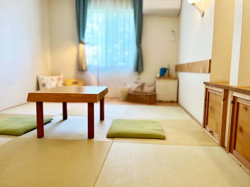 たたみ・無垢の木の質感はお客さまをやさしくお迎えします。のんびりなさってください。