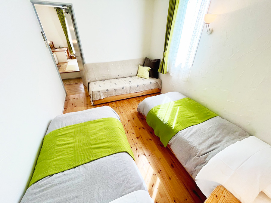 和洋室にはお布団のご用意がございます。お布団はセルフサービスです。ご家族に便利にご利用いただいています。