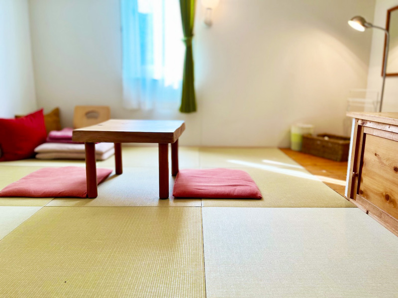 たたみ・無垢の木の質感はお客さまをやさしくお迎えします。のんびりなさってください。